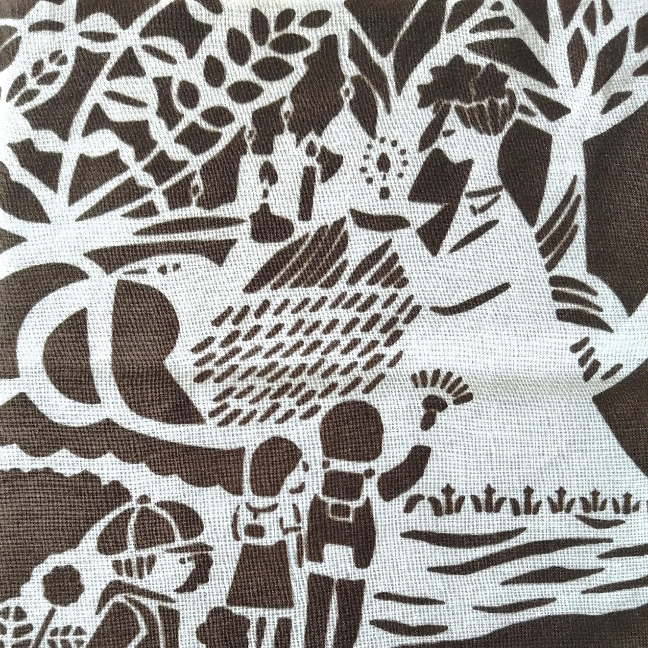 手捺染で一枚一枚染めており、カスレやにじみや版ズレがあるもの、生地自体にフシがあるものもございますので、何卒ご了承ください。